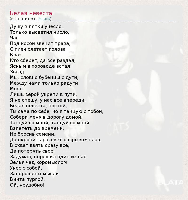 А как ты думаешь, о чем песня "Белая невеста" ?