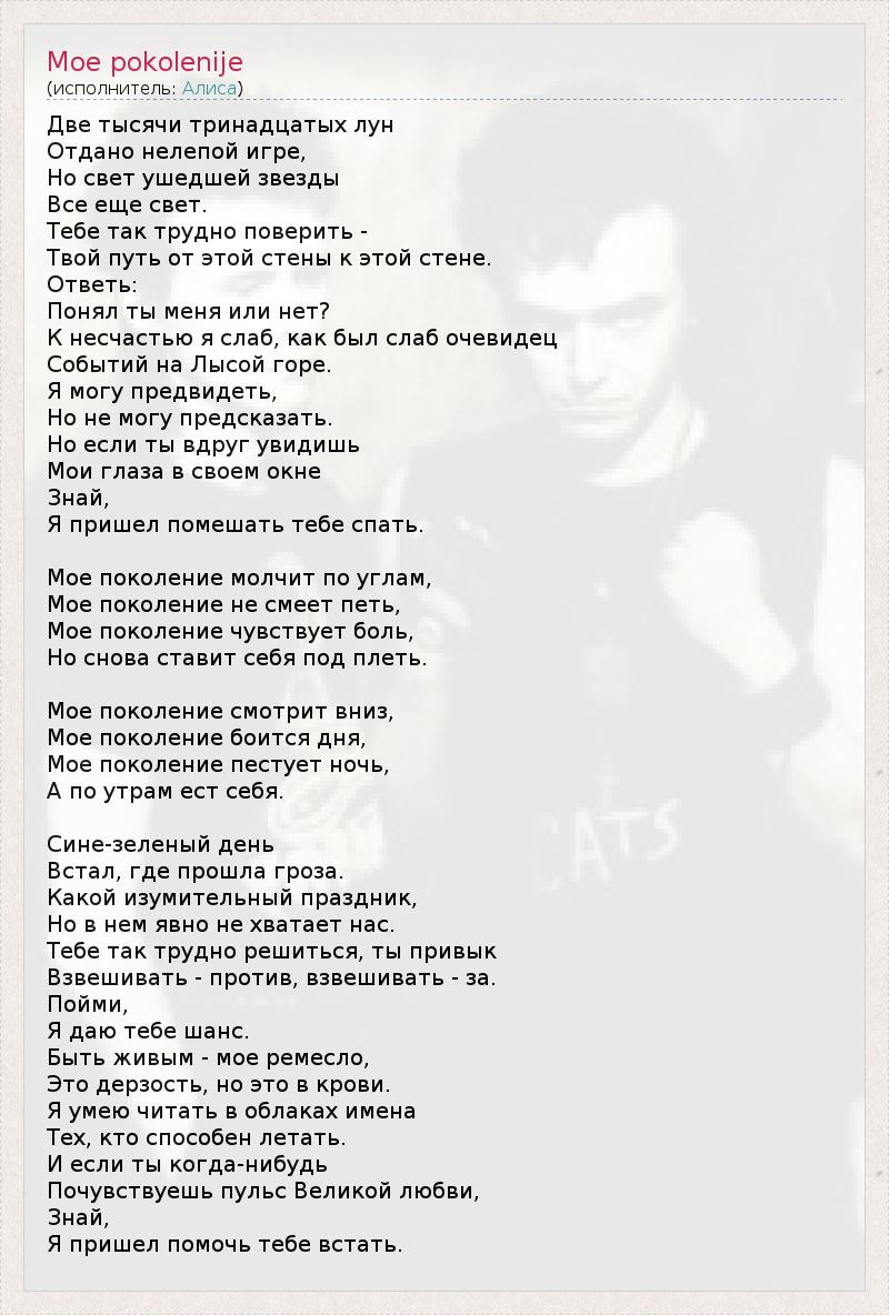 А как ты думаешь, о чем песня "Moe pokolenije" ?