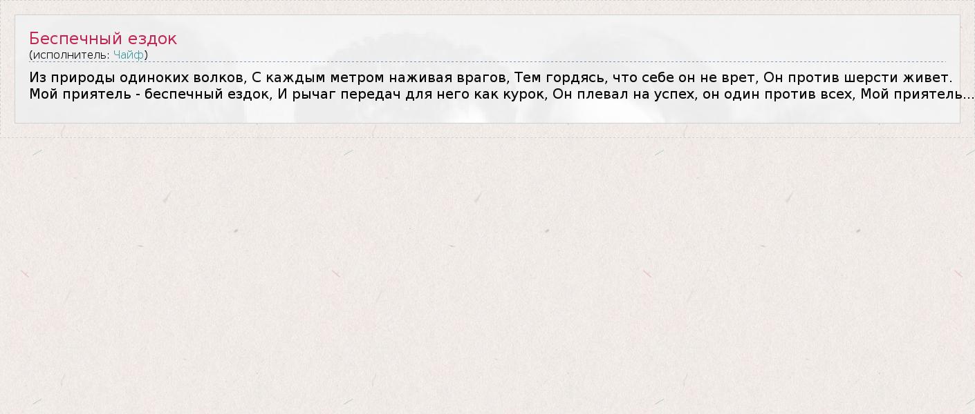 ГлавнаяИсполнителиЧайфБеспечный ездок