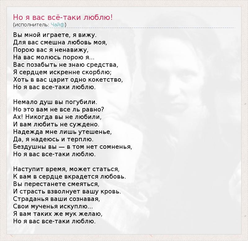 ГлавнаяИсполнителиЧайфНо я вас всё-таки люблю!