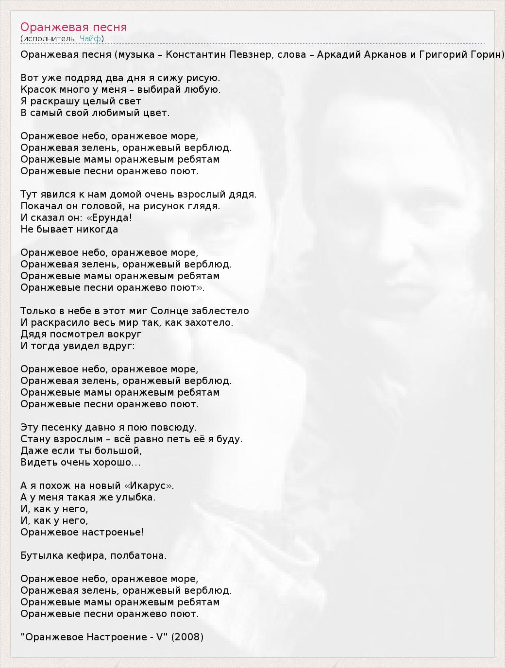 ГлавнаяИсполнителиЧайфОранжевая песня