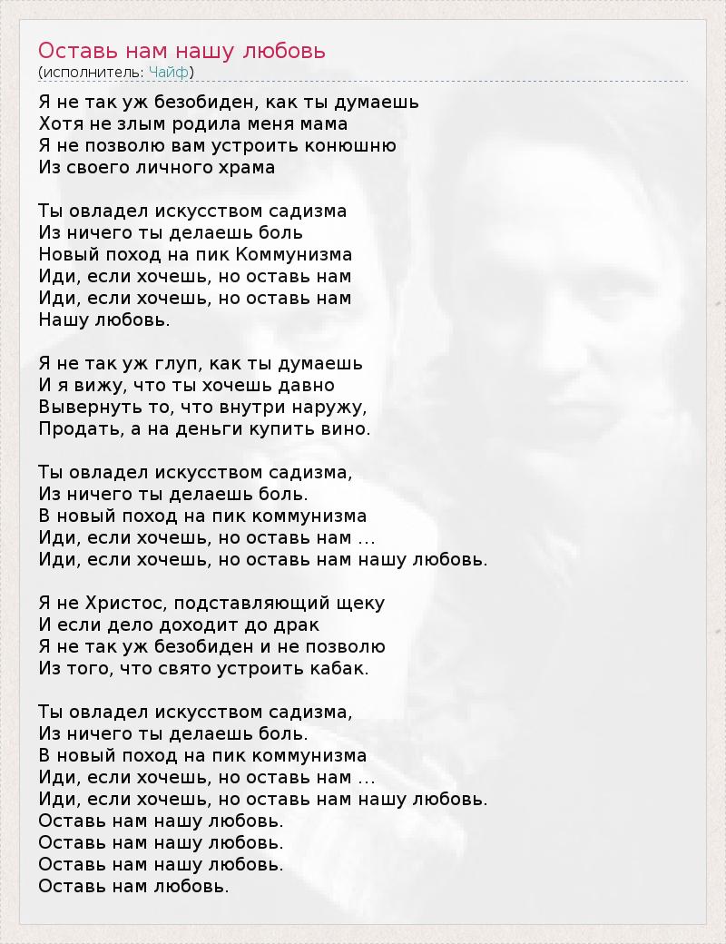 ГлавнаяИсполнителиЧайфОставь нам нашу любовь