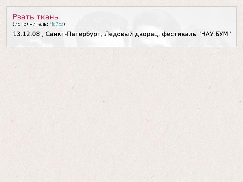Это интересно:Чайф - русская рок-группа, чей стиль сочетает рок-музыку с рэгги, поп-музыкой и авторской песней.Датой основания группы принято считать 29 сентября 1985 года, день первого концерта в свердловском ДК МЖК, когда коллектив впервые выступил под названием ЧАЙФ.Название группы появилось в результате репетиций, переходящих в дружеские посиделки. «Слово относилось к тому напитку, который... продолжение