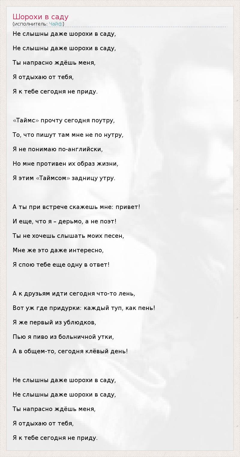 ГлавнаяИсполнителиЧайфШорохи в саду