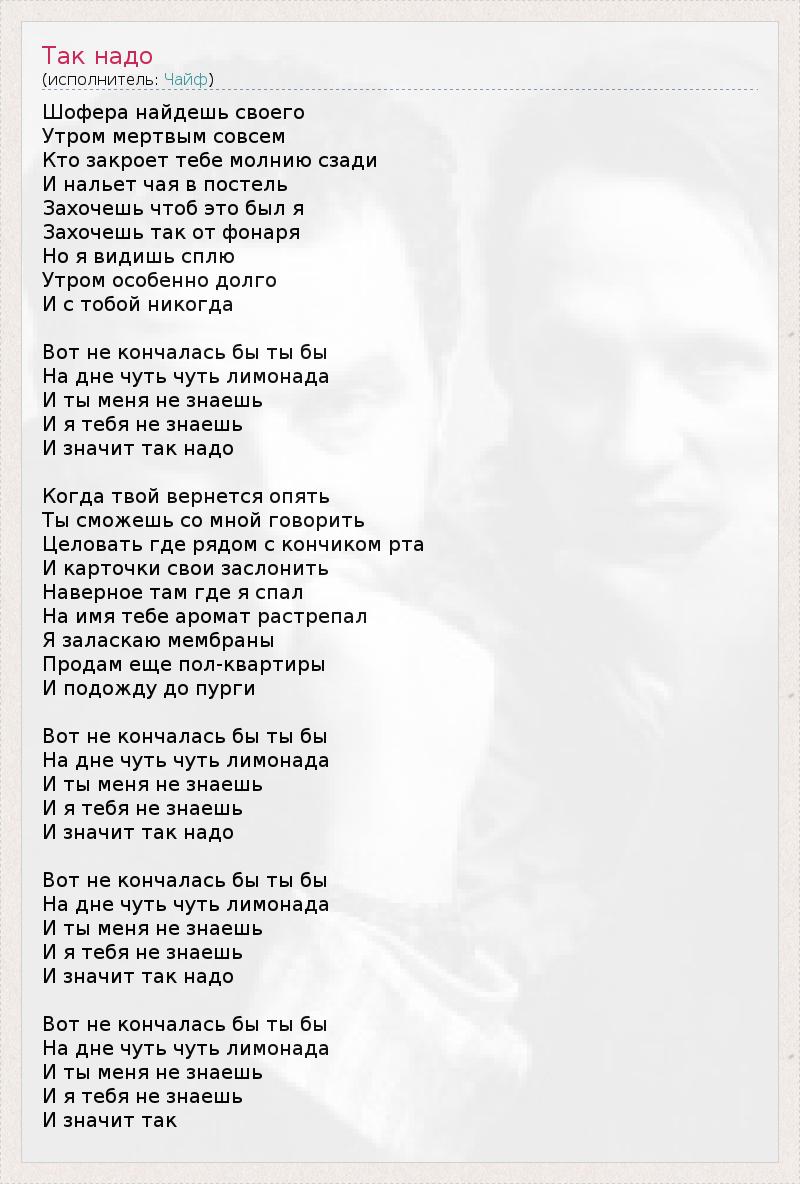 Это интересно:Чайф - русская рок-группа, чей стиль сочетает рок-музыку с рэгги, поп-музыкой и авторской песней.Датой основания группы принято считать 29 сентября 1985 года, день первого концерта в свердловском ДК МЖК, когда коллектив впервые выступил под названием ЧАЙФ.Название группы появилось в результате репетиций, переходящих в дружеские посиделки. «Слово относилось к тому напитку, который... продолжение
