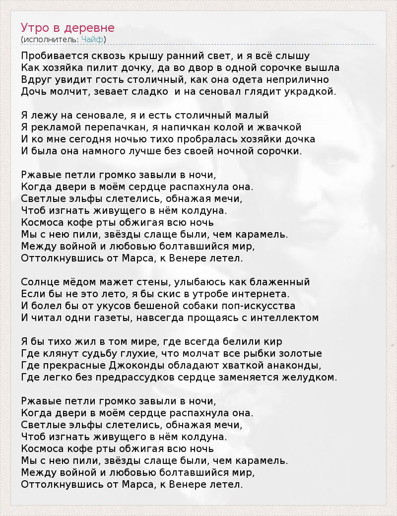ГлавнаяИсполнителиЧайфУтро в деревне