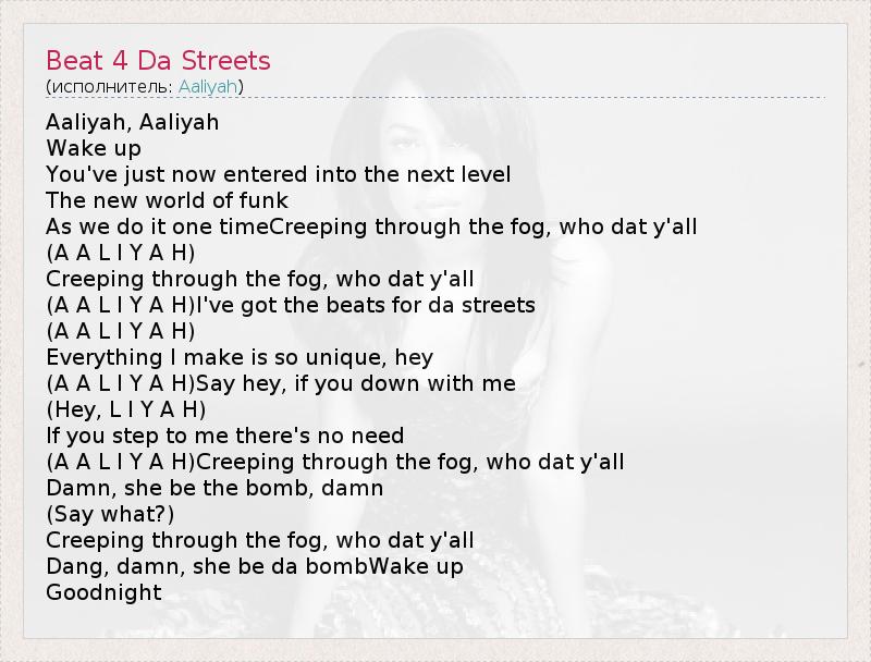 А как ты думаешь, о чем песня "Beat 4 Da Streets" ?