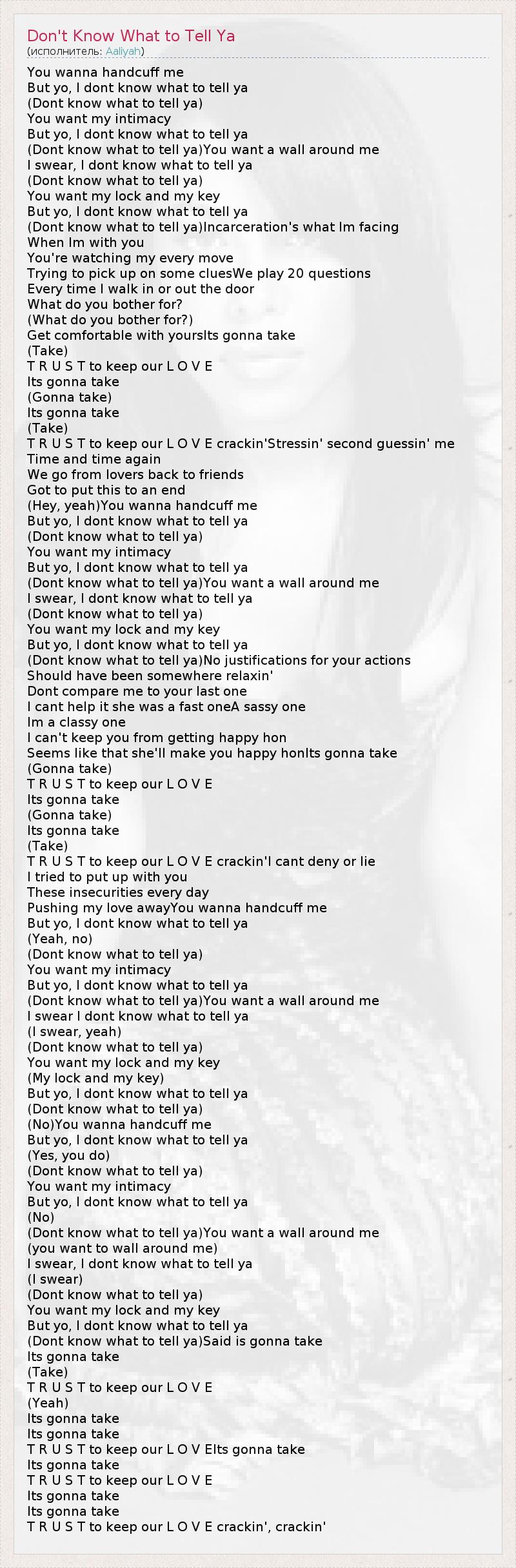ГлавнаяИсполнителиAaliyahDon't Know What to Tell Ya