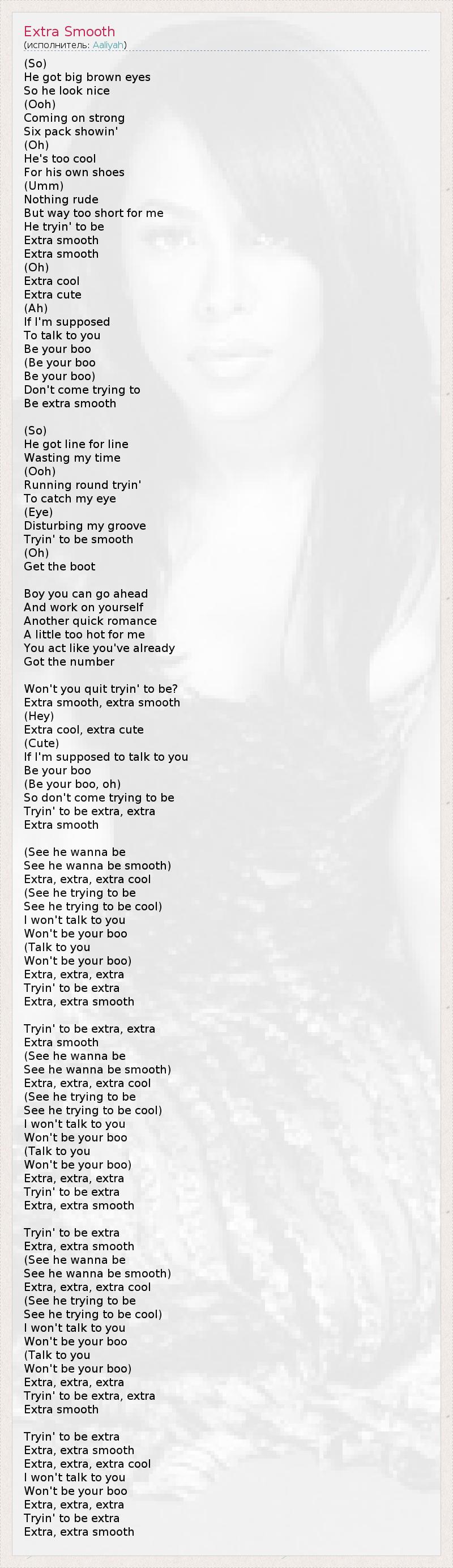 А как ты думаешь, о чем песня "Extra Smooth" ?