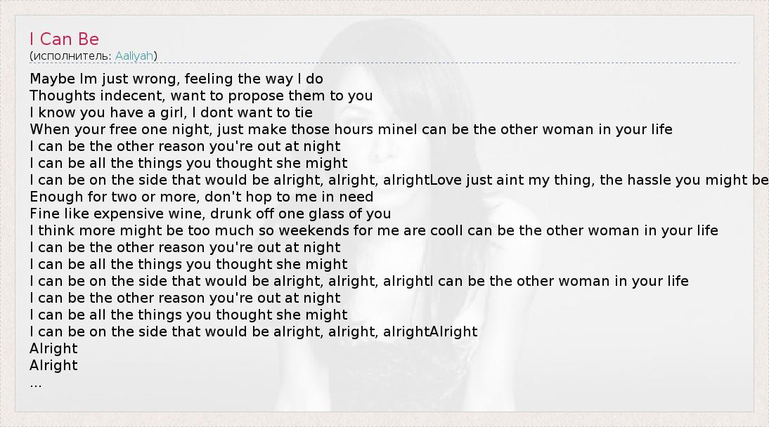 I can be on the side that would be alright, alright, alrightI can be the other woman in your life