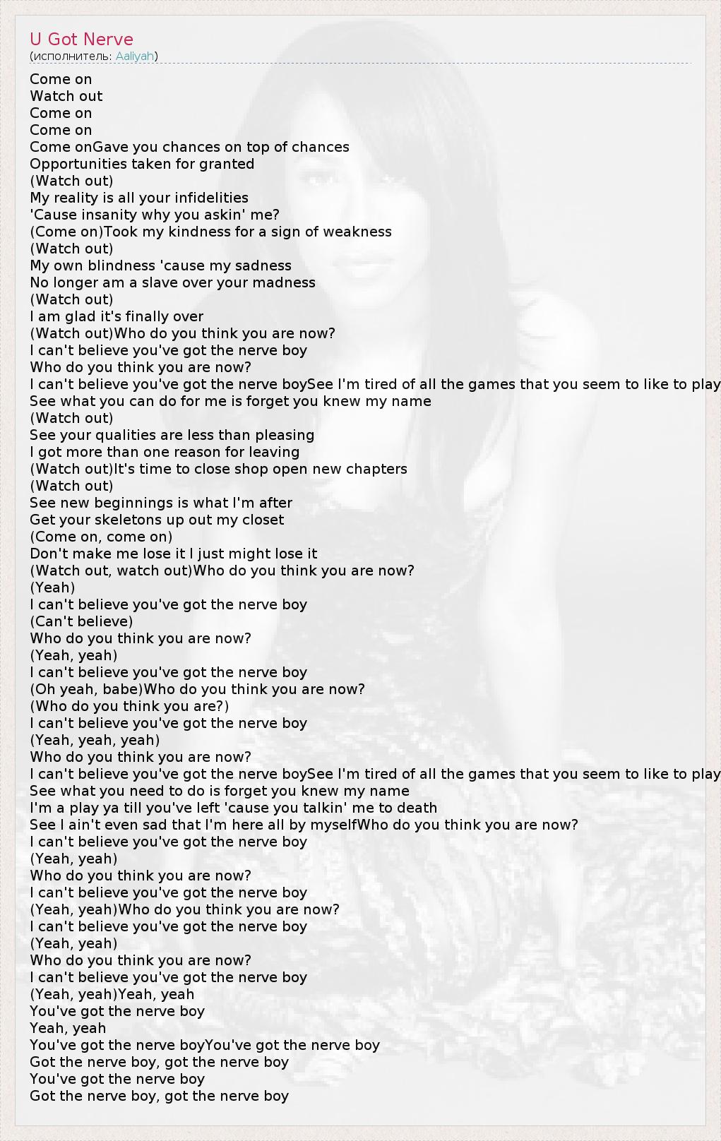 А как ты думаешь, о чем песня "U Got Nerve" ?