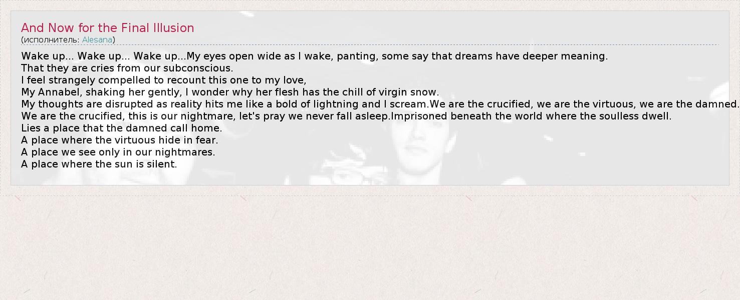 ГлавнаяИсполнителиAlesanaAnd Now for the Final Illusion