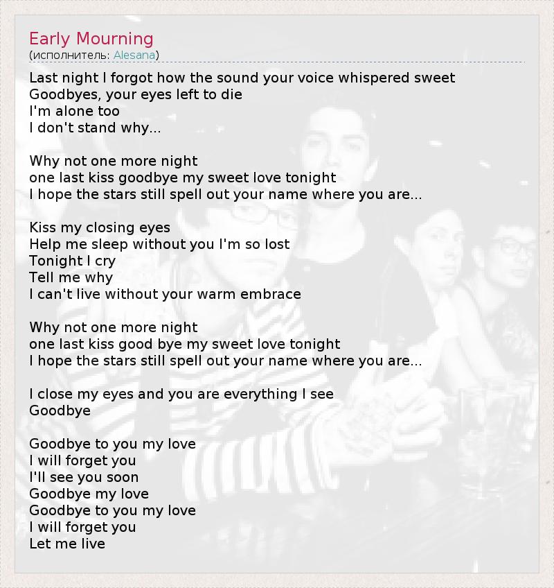 А как ты думаешь, о чем песня "Early Mourning" ?