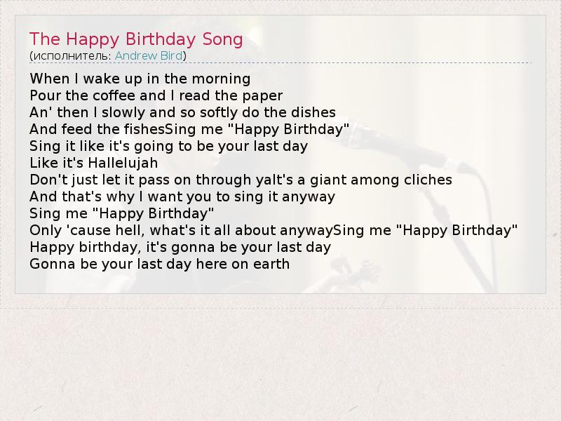 ГлавнаяИсполнителиAndrew BirdThe Happy Birthday Song