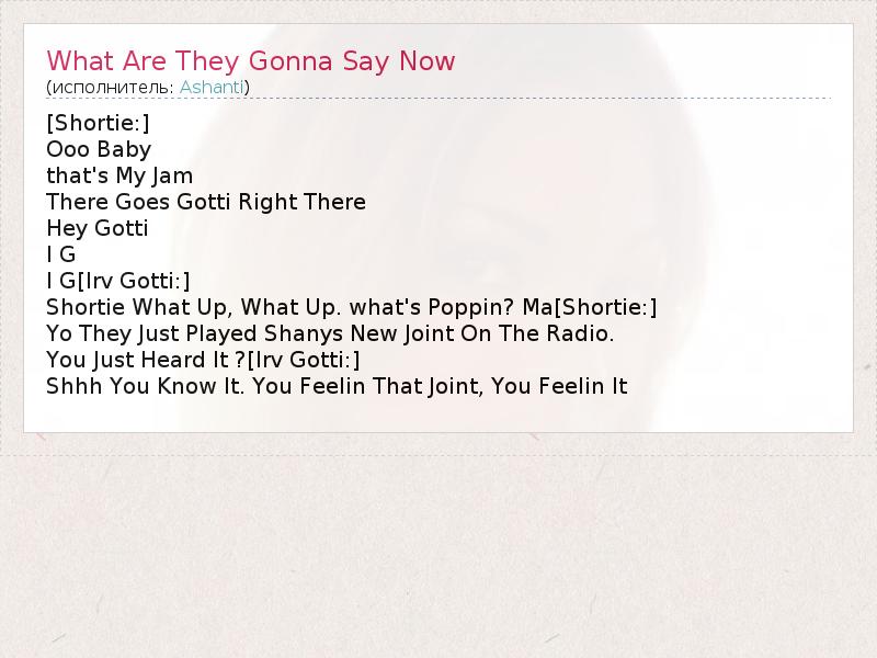 А как ты думаешь, о чем песня "What Are They Gonna Say Now" ?