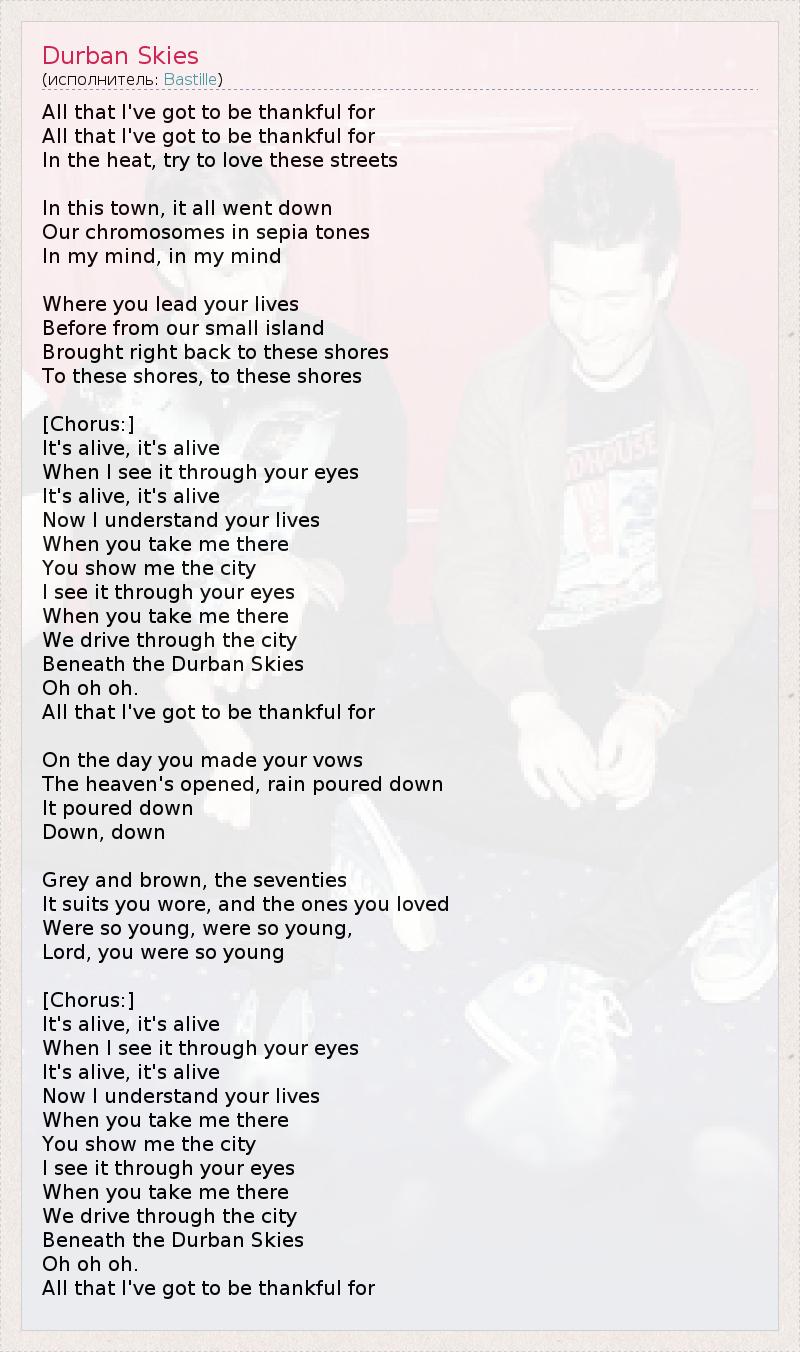 А как ты думаешь, о чем песня "Durban Skies" ?
