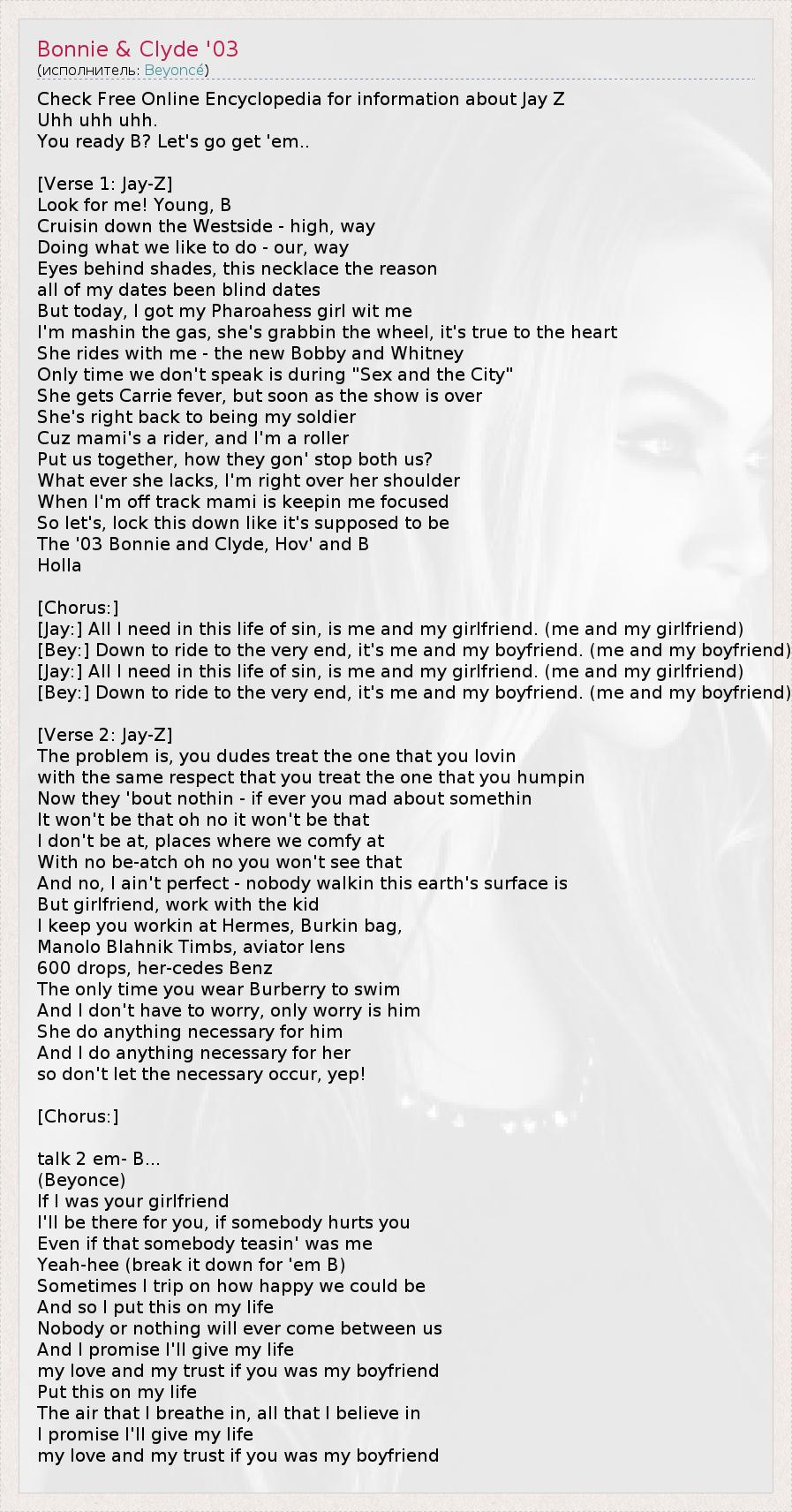 А как ты думаешь, о чем песня "Bonnie & Clyde '03" ?