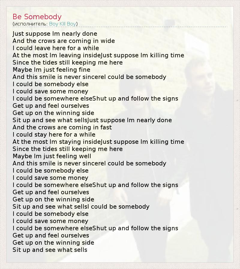 А как ты думаешь, о чем песня "Be Somebody" ?