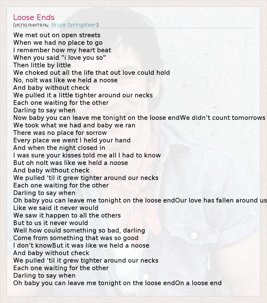 Oh baby you can leave me tonight on the loose endOn a loose end