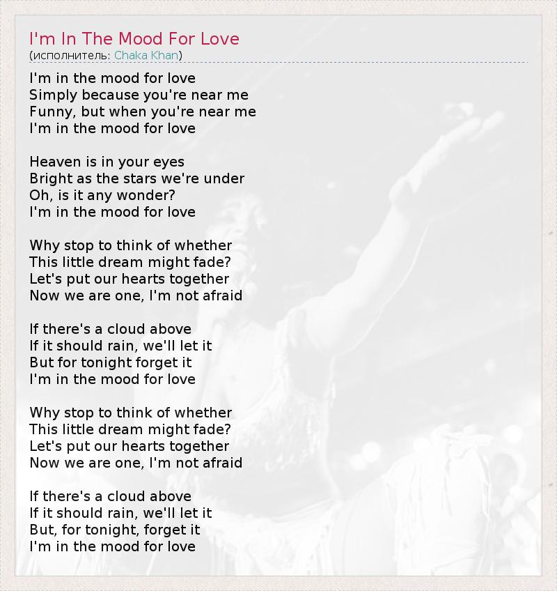 А как ты думаешь, о чем песня "I'm In The Mood For Love" ?