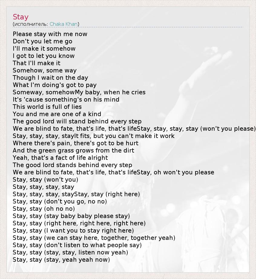 We are blind to fate, that's life, that's lifeStay, stay, stay, stay (won't you please)