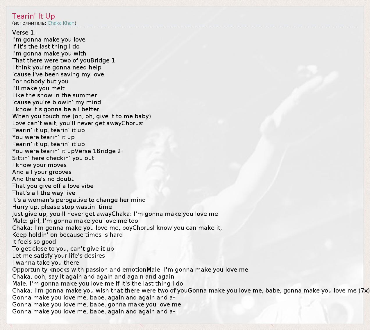 А как ты думаешь, о чем песня "Tearin' It Up" ?