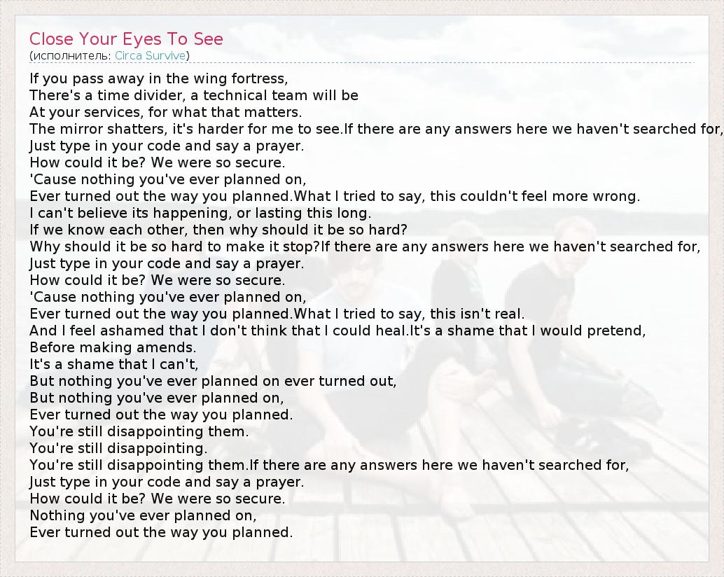 А как ты думаешь, о чем песня "Close Your Eyes To See" ?