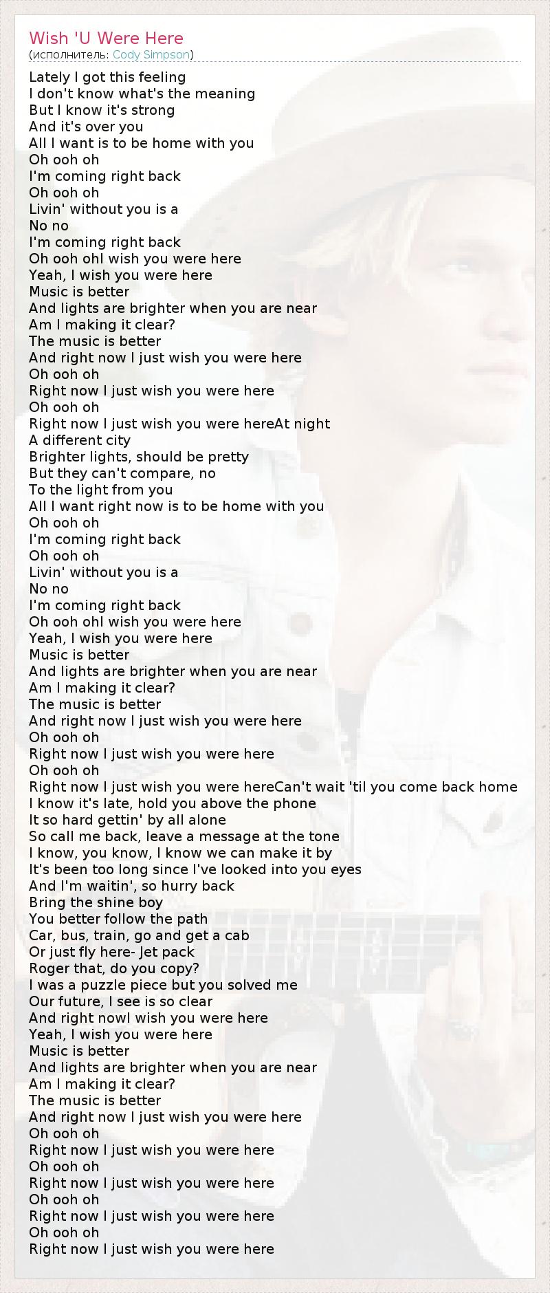 А как ты думаешь, о чем песня "Wish 'U Were Here" ?