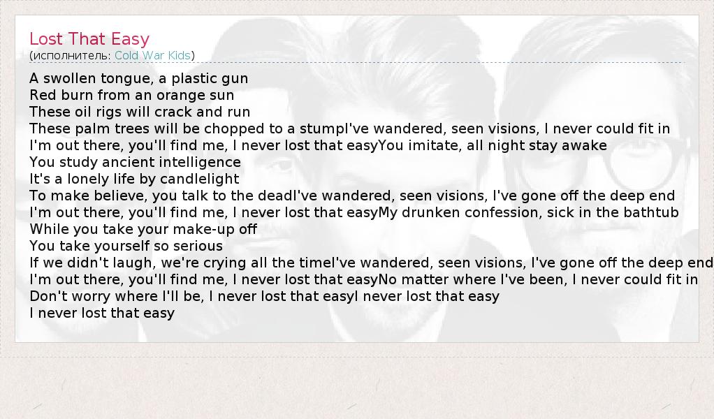 А как ты думаешь, о чем песня "Lost That Easy" ?