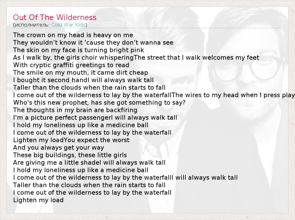 А как ты думаешь, о чем песня "Out Of The Wilderness" ?