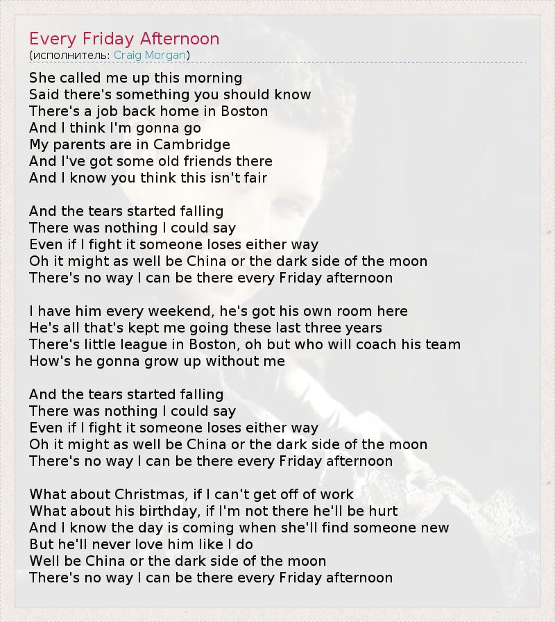 А как ты думаешь, о чем песня "Every Friday Afternoon" ?
