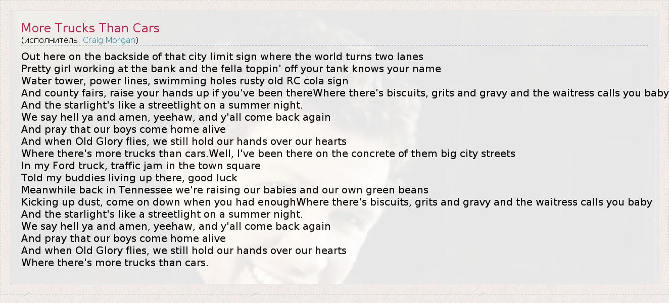 А как ты думаешь, о чем песня "More Trucks Than Cars" ?