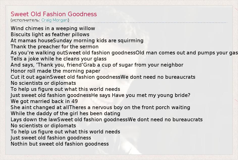 А как ты думаешь, о чем песня "Sweet Old Fashion Goodness" ?
