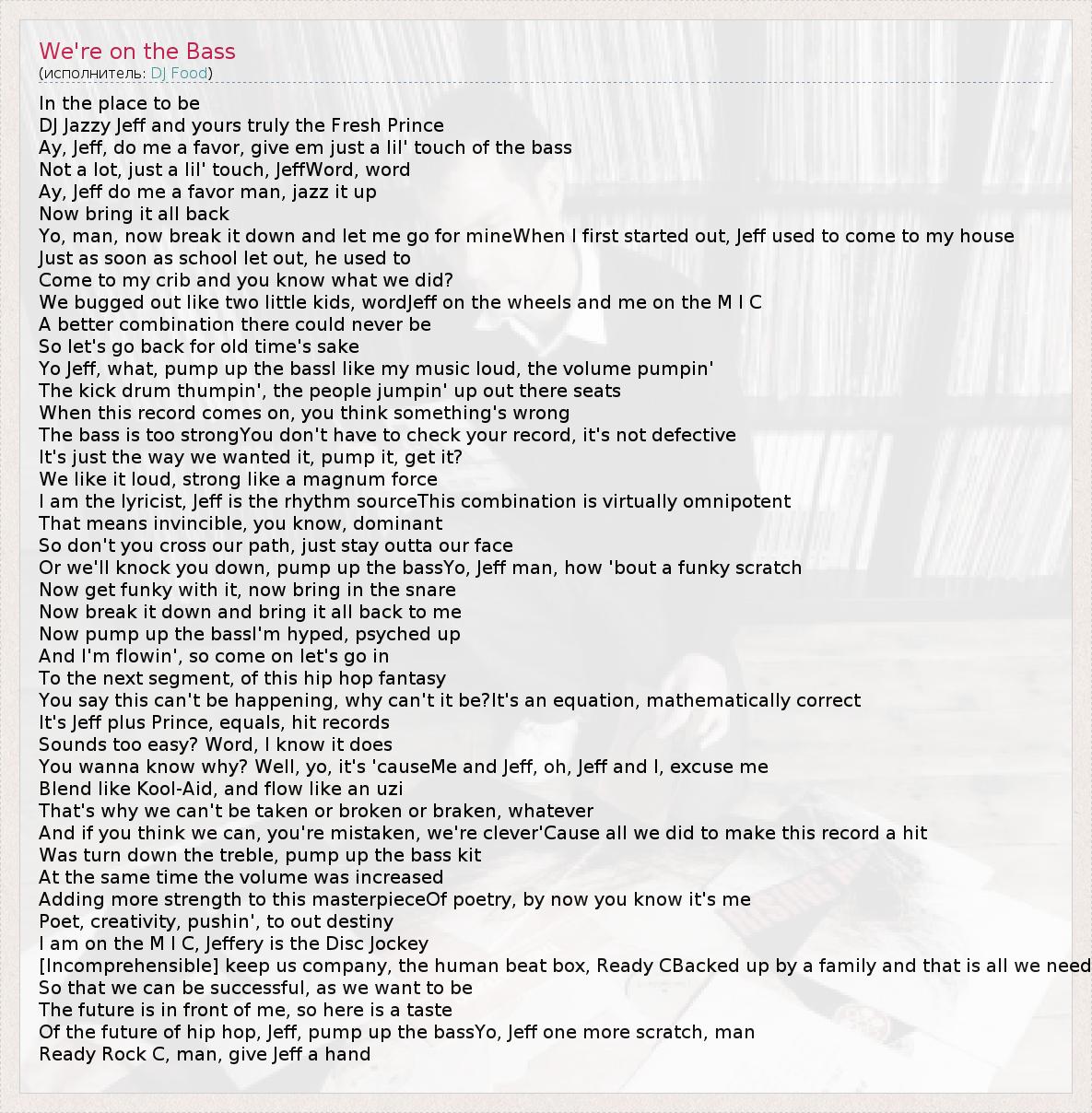 А как ты думаешь, о чем песня "We're on the Bass" ?