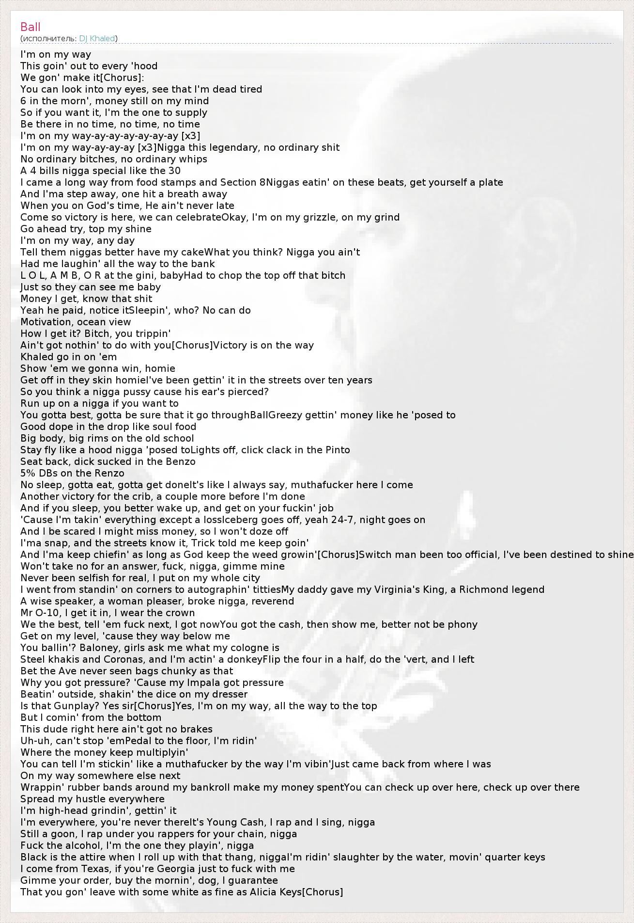 Это интересно:Dj Khaled родился в Новом Орлеане, штат Луизиана . Он имеет палестинские корни и живет в Пемброк Пайнс Ознакомившись с треклистами двух альбомов DJ Khaled, есть риск поймать себя на желании навесить на него ярлык главного жулика и халявщика современного хип-хопа" - на обеих пластинках всего 3 песни с его продакшном. При этом он не читает рэп и не поет – впору трясти чеком и требовать сатисфакции.... продолжение