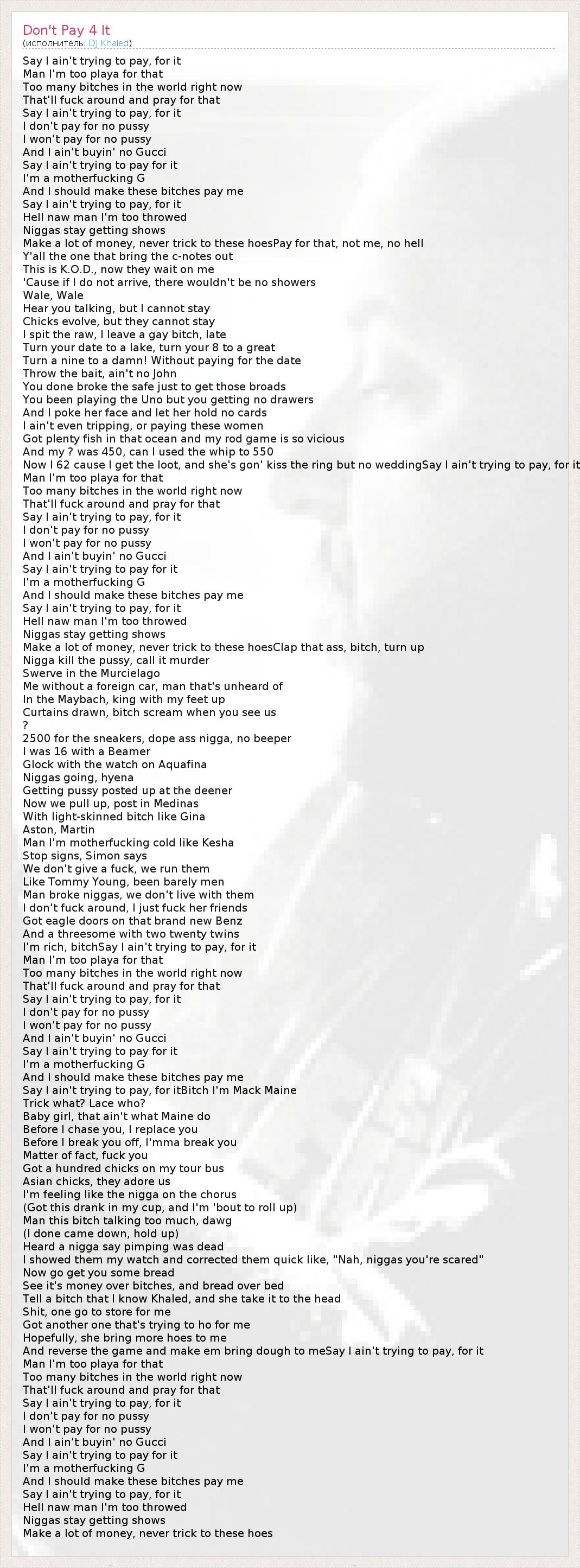 А как ты думаешь, о чем песня "Don't Pay 4 It" ?