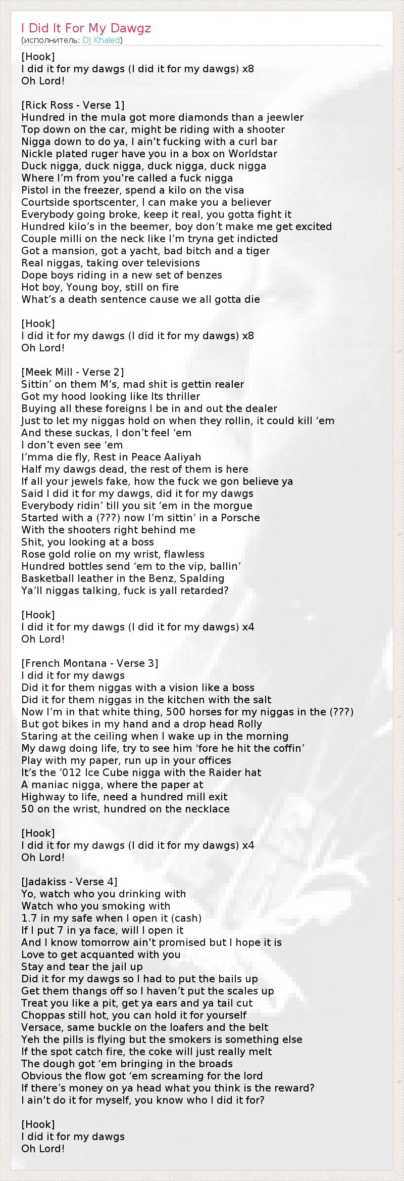 А как ты думаешь, о чем песня "I Did It For My Dawgz" ?