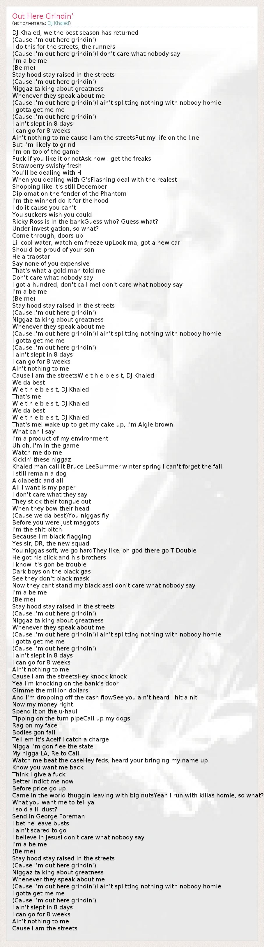 А как ты думаешь, о чем песня "Out Here Grindin’" ?