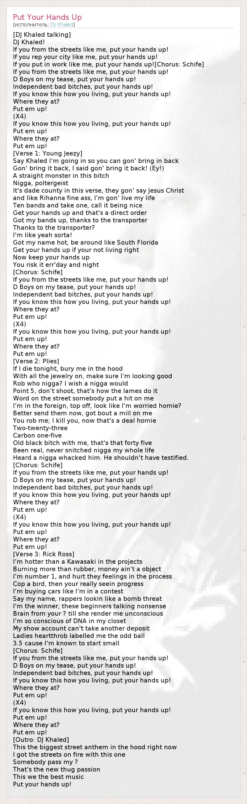 If you from the streets like me, put your hands up!