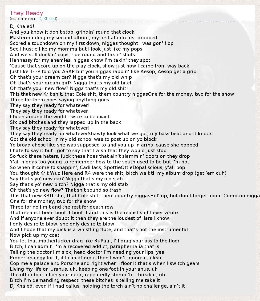 Это интересно:Dj Khaled родился в Новом Орлеане, штат Луизиана . Он имеет палестинские корни и живет в Пемброк Пайнс Ознакомившись с треклистами двух альбомов DJ Khaled, есть риск поймать себя на желании навесить на него ярлык главного жулика и халявщика современного хип-хопа" - на обеих пластинках всего 3 песни с его продакшном. При этом он не читает рэп и не поет – впору трясти чеком и требовать сатисфакции.... продолжение