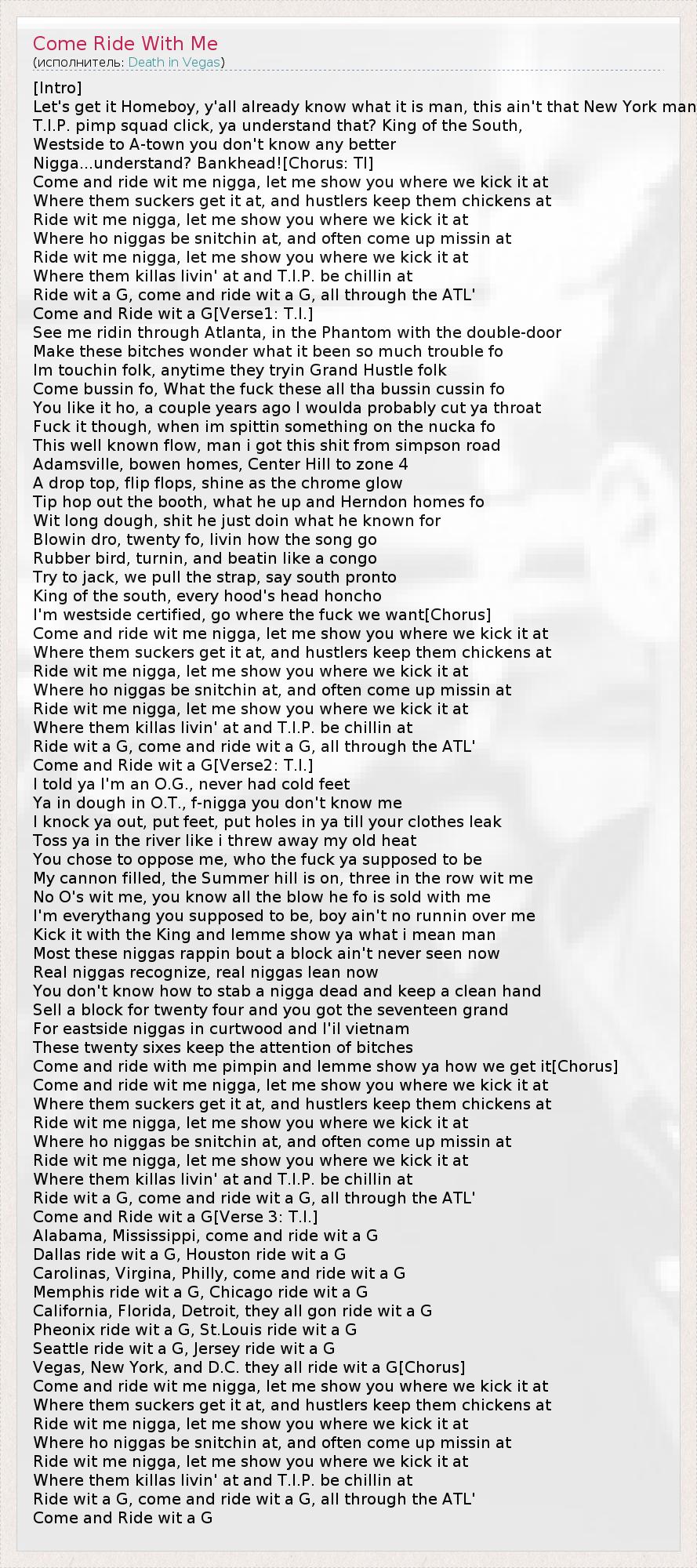 Come and Ride wit a G[Verse1: T.I.]