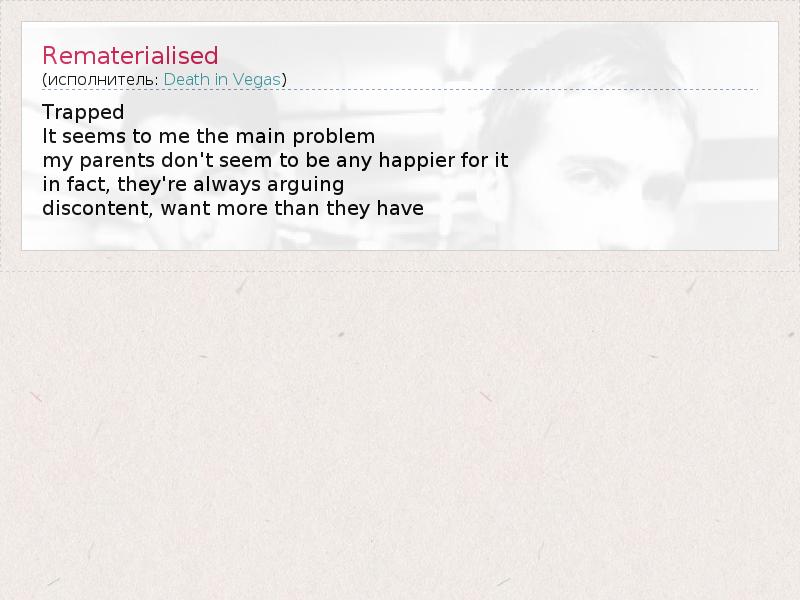 А как ты думаешь, о чем песня "Rematerialised" ?