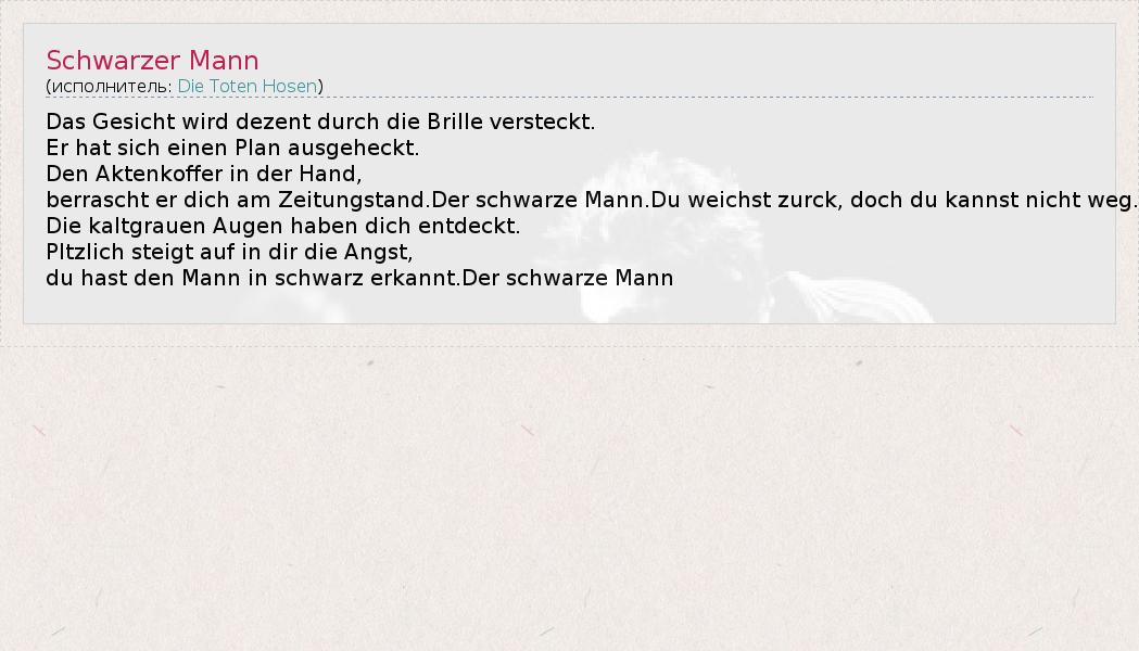А как ты думаешь, о чем песня "Schwarzer Mann" ?