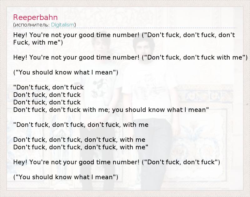 Hey! You're not your good time number! ("Don't fuck, don't fuck with me")