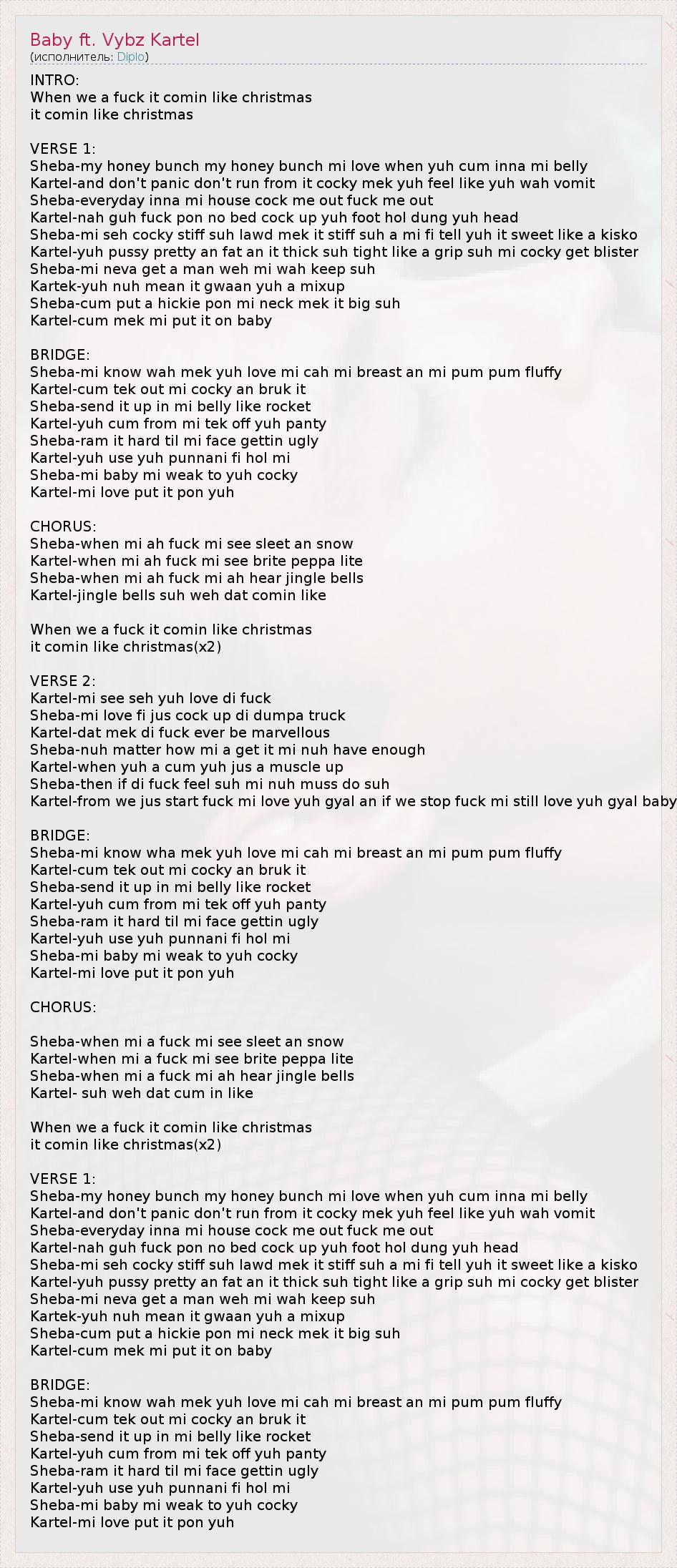 А как ты думаешь, о чем песня "Baby ft. Vybz Kartel" ?