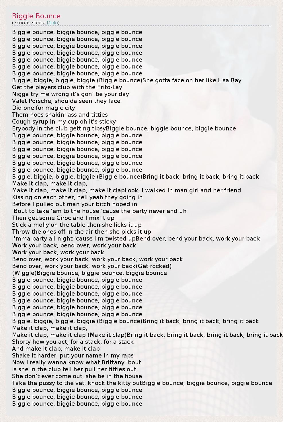 А как ты думаешь, о чем песня "Biggie Bounce" ?
