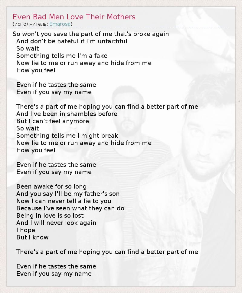 ГлавнаяИсполнителиEmarosaEven Bad Men Love Their Mothers