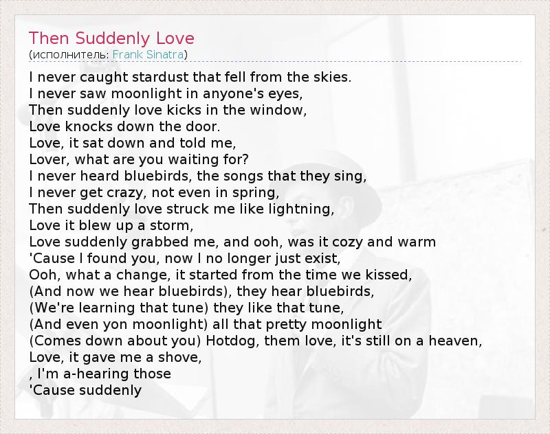 А как ты думаешь, о чем песня "Then Suddenly Love" ?