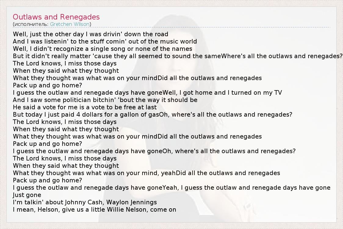 А как ты думаешь, о чем песня "Outlaws and Renegades" ?