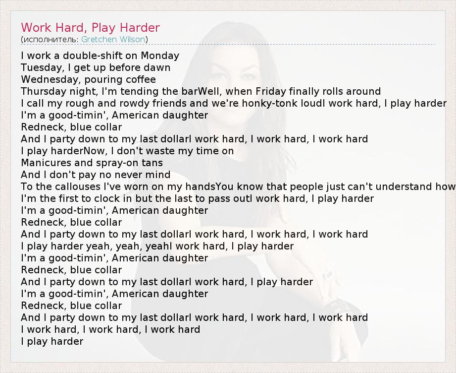 А как ты думаешь, о чем песня "Work Hard, Play Harder" ?